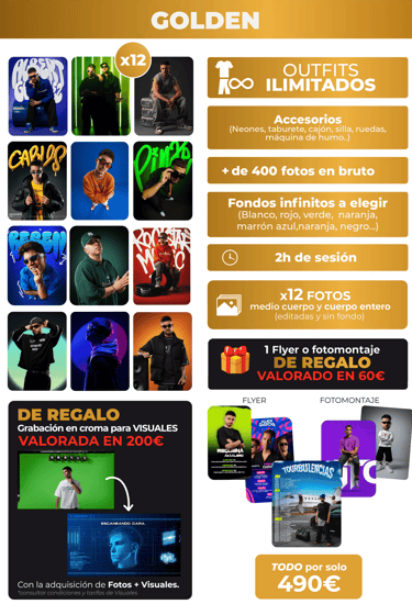 Si quieres captar la atención de discotecas, marcas y promotoras entonces el Pack GOLDEN es para ti: es el más completo y creativo.